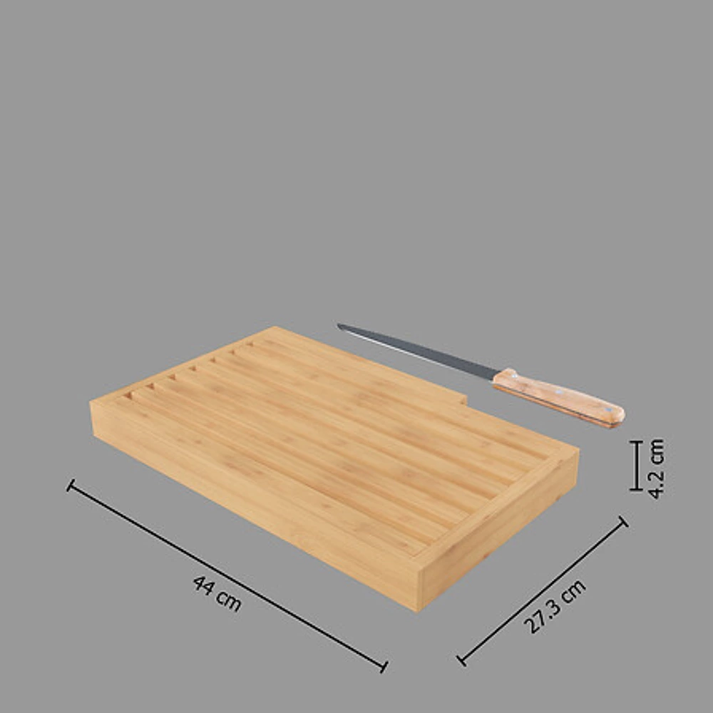 Adaugă un element practic și elegant bucătăriei tale cu acest tocător pentru pâine din bambus, perfect pentru felierea pâinii sau servirea preparatelor.